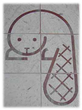 Slate floor tiles, beaver glyph. |