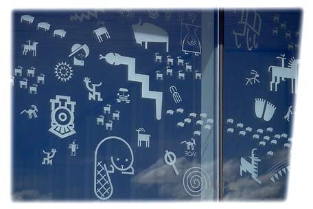 Glyph panels on two 4'x8' thermopane windows: sand-blasted glass. |