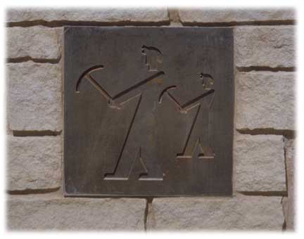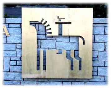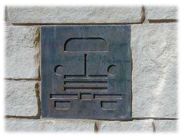 "Welcome" glyph, 4'x4' bronze panel embedded in concrete. |