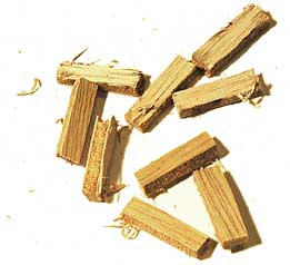 Two dabs of hot glue hold the wood bracket in place. The cap may then be applied to the substrate by applying glue to the wood bracket.