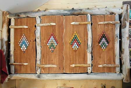 Click here for the Cabinets page. The cabinet doors are made of recycled printer paper-top-pallet wood.