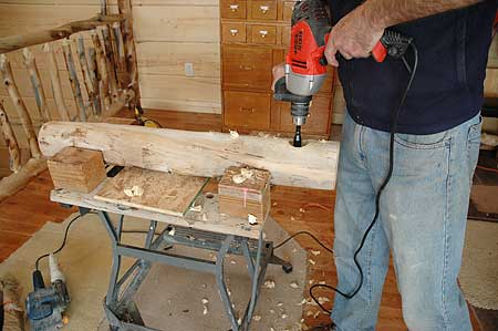 Here I am cutting a two-inch hole, which will hold the horizontal member tenon.