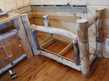 The various parts have been completed, assembled and fit. The wall-side vertical is screwed into the wall. I have made a assembly of 2x4's which further binds the logs to the wall. This wall also supports the floor of the counter.
