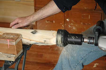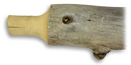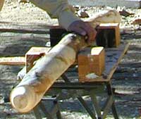 I drilled the 1" holes, using a depth gaugue made out of a piece of pine root to keep the holes at a standard depth.