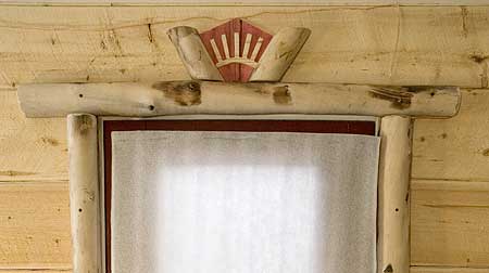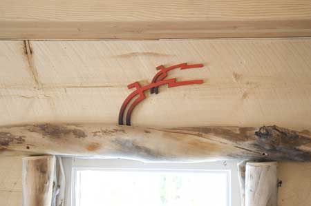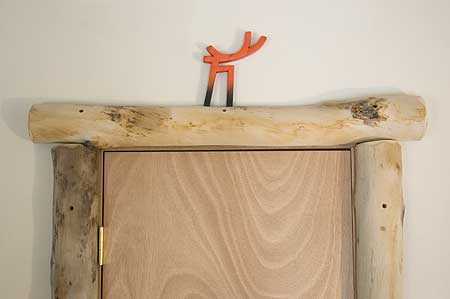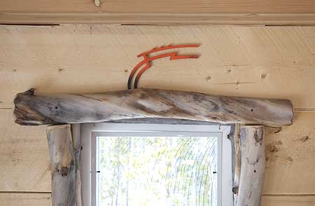 This one is an experiment in adding a different form. It is only lightly attached to the wall. The two tilted logs are a variation on a form found in Cycladic eclesiastic architecture in the Greek isles.