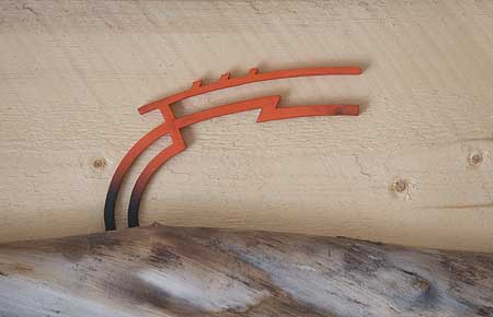 I have begun adding glyphs over the doors and windows. They are made of aspen scrap. They are all painted red and black using an airbrush. The red paint is diluted acrylic; it reveals the grain of the aspen.