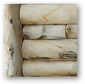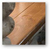 Varnished aspen trim under window sills is made from aspen scraps.
