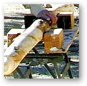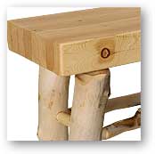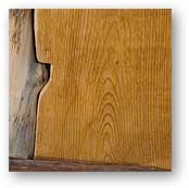 Pine railing: The bark has been trimmed with the bandsaw. Varnish has been applied.