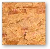 OSB (oriented strand board): scraps of this widely-used construction material were used in my kitchen cabinets, the log bedroom, and elsewhere.