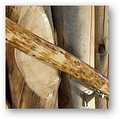 Standing dead aspen for door trim, window trim, railings and walls: Harvested by hand with a buck saw.