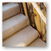 Carpet on stairs and on the basement's concrete floors: They are all from large scraps retrieved from a carpet business's dumpster.