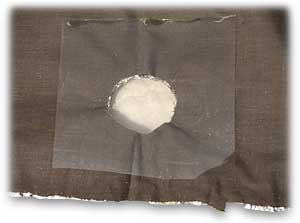 Some of the cabin's insulation curtains are made of packing foam. It is a closed cell foam, used to wrap furniture. The kind I am using here is particularly thick, which makes the finished curtain dimensionally stable and easier to hang and take down. It is easily cut, and can be glued together using hot glue.
