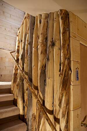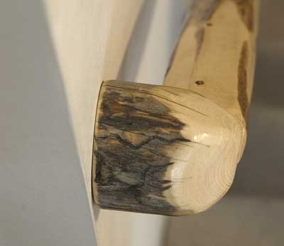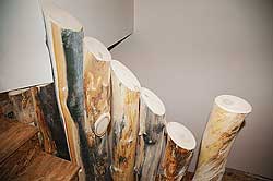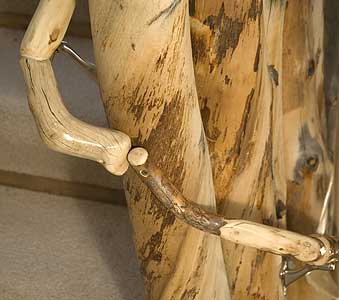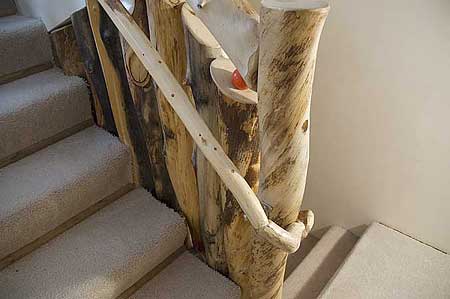 This return is made from a section of pine tree. It finishes the railing at the head of the stairs.