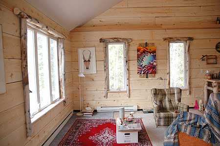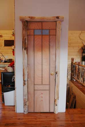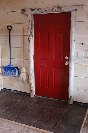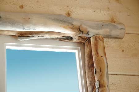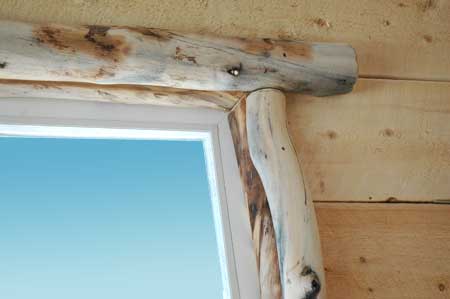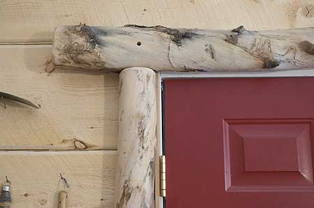 The windows and doors are trimmed with dead aspens. This image was taken before I had completed the trim underneath the window sills.