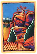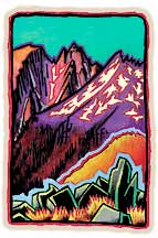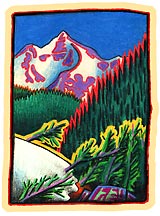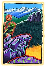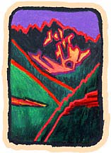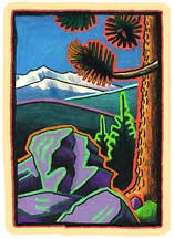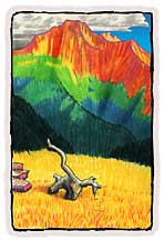 ART: DRAWINGS: COLORADO 1These are colored-pencil drawings I make in a 6"x9" bound book when hiking.These images are available as inkjet monoprints. Some are available as note cards (**). Many have been made into oil paintings. |
