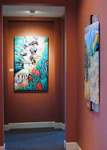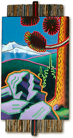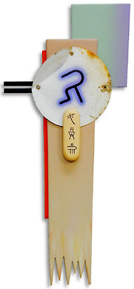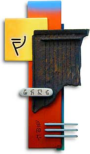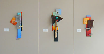 PAINTED WOOD COLLAGES WITH METAL & WOODEN DEBRIS