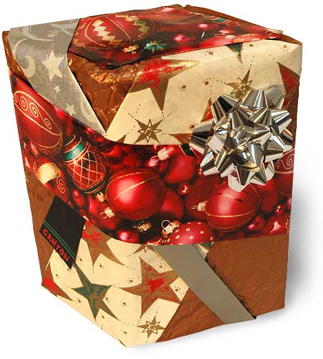 The bands were made from larger scraps of old wrapping paper. This wrap demonstrates how to handle boxes that are not as thin as my other band wraps. This one is done on a white underwrap made from old press proofs.