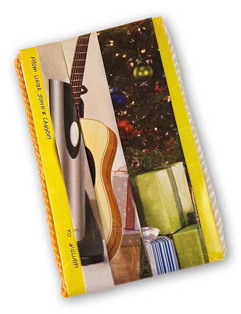 A five-band wrap on yellow paper left sides exposed. So I covered them with cord from shopping-bag handles.