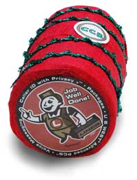I had a roll of crepe paper left over from a birthday party. I wound it around the gift until it was well covered. This makes for an amusing unwrap. I sealed both ends of the wrap with round stickers from my on-going collection of stickers